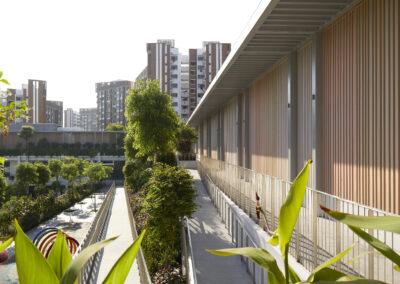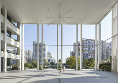The design is conceived as a light and open frame that captures and accommodates the diverse programmes for the community, allowing communal life to unfold in. Therefore, the architecture is characterized by a sense of lightness and openness allowing daylight and breezes to permeate the building. Wide, sky-lit north-south and east-west thoroughfares closely connect the centre to the surrounding neighbourhood and naturally divide it into the polyclinic and commercial zones. These lead directly to the large sheltered plaza creating a vibrant heart for the community.