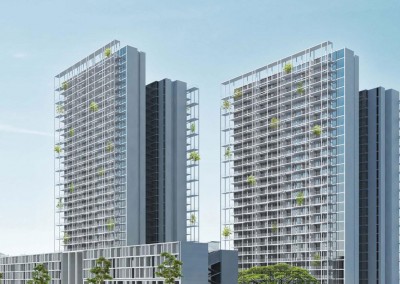 The development, in collaboration with Serie Architects, features 436 apartments in two towers. The complex also includes a row of shophouses on the south perimeter of the site, a clubhouse, extensive carparking, a swimming pool, outdoor party pavilions, bbq areas, children’s play area, gardens and tennis courts. The core concept of the tower design is to re-configure the relationship between living space and nature in high-rise living through layers of greenery where apartments are interspersed with garden terraces bringing nature and greenery into immediate proximity to living.