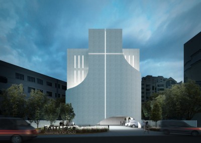 Our challenge is to work within the confines of a small lot size while allowing for future expansion and providing a welcoming and exciting face for the Church.