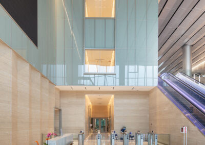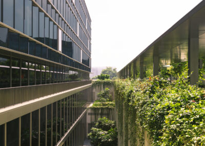 The Science Park model of the 1990s, with buildings isolated from one another by under-utilized landscape is no longer adequate for today’s workspaces that are more social in nature. The first of more than five buildings in the cluster, 5SPD is designed to ensure that common spaces are visible, accessible and nourished with amenities. The building features a three-storey extended lobby or ‘city room’ that incorporates a series of cascading platforms incorporating a café, break-out spaces and a small auditorium. This space is focused on collaboration, discussion and networking.